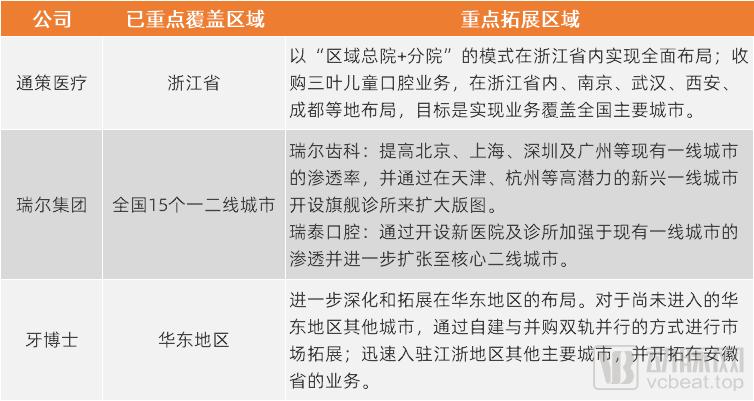 几家口腔连锁扩张布局的重点区域,资料来源:招股书或财报,动脉网整理制图