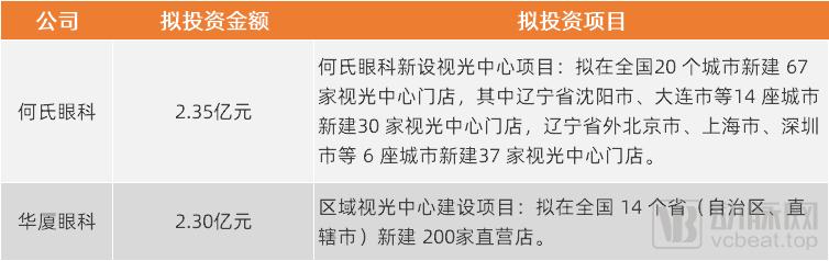 何氏眼科和华厦眼科拟用于视光服务的投资,资料来源:公司招股书,动脉网整理制图
