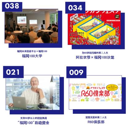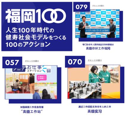 因此,福冈100中,现有7个是关于老年人再就业的:079的老年职业介绍所,070老年实习,057流动长者工作站,038“福冈100”大学,034阿拉坎节,021“福冈100”启动资金。