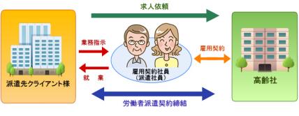 高龄社的经营模式以劳务派遣为主,雇佣合同员工(派遣职员)与股份公司高龄公司建立雇佣关系后,能够在派遣单位的各个部门或各店铺就业,日常工作的指示由派遣地负责人负责。