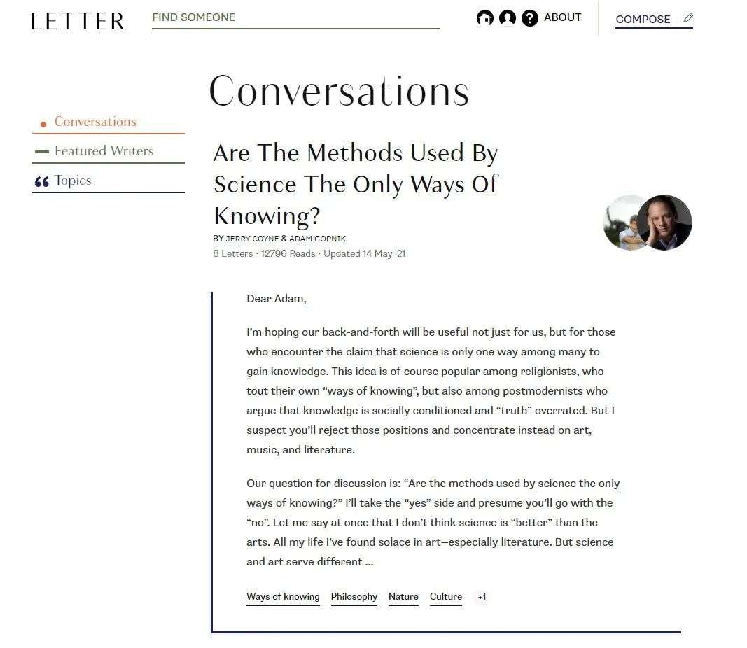 刚上线不久的英文平台Letter.wiki也是例子之一。作为严肃评论平台,Letter.wiki网罗了大批一流的学者,它并没有采用传统的专栏制,而是要求每一位作者通过书信的形式沟通。平台上的每一篇内容,都以“Dear XXX”打头,以“Best wishes”结尾。由于不支持即时的评论和互动,每一位作者在回应之前都需要认真斟酌观点,仔细组织语言后进行回复,从而形成了更有意义的深度交流。