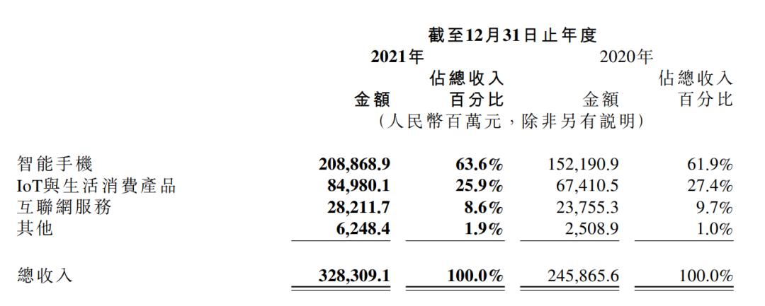 “高端手机”成为2021年对小米贡献最多的业务之一。