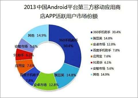 从数据来看,2013年的国内Android应用商店市场还是以第三方应用商店主导。