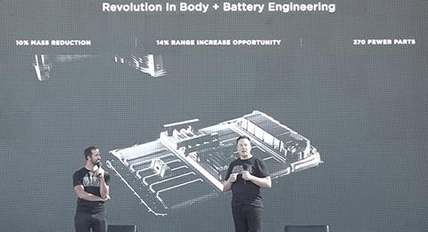 2020年电池日上马斯克展示的Model Y构件