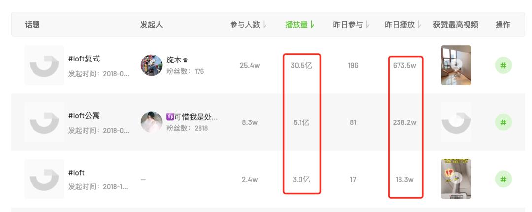 根据飞瓜数据,抖音上与Loft相关的话题,总播放量接近40亿。