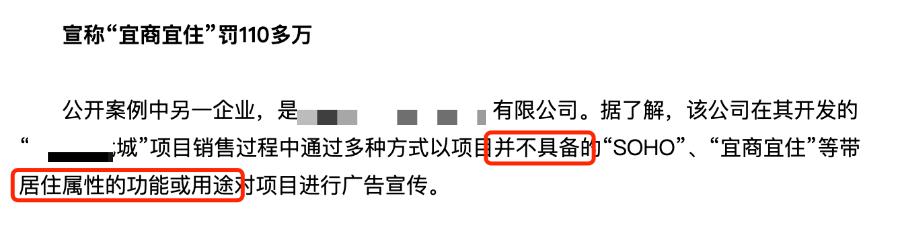 曾有企业将并不具备居住功能的房产项目宣传为“宜商宜住”,而受到处罚/海峡导报