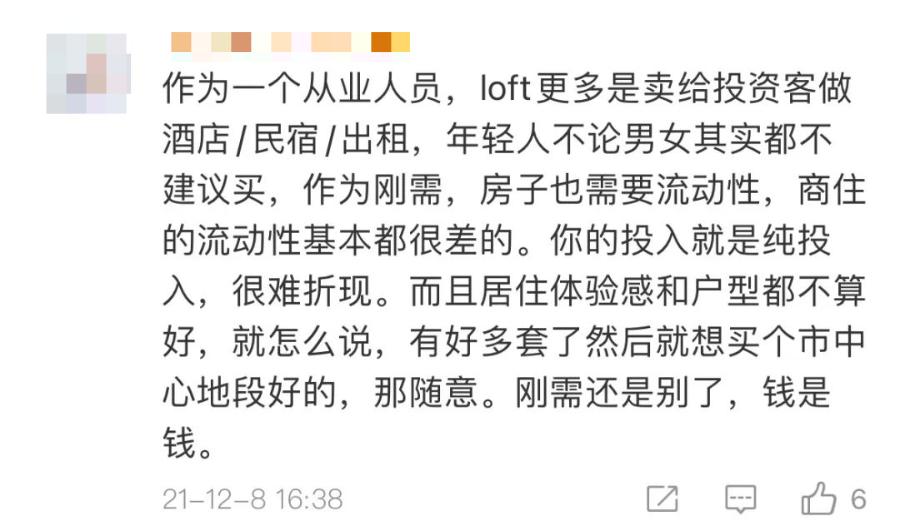 有人无奈地留言:买得起大产权住宅,谁买Loft?