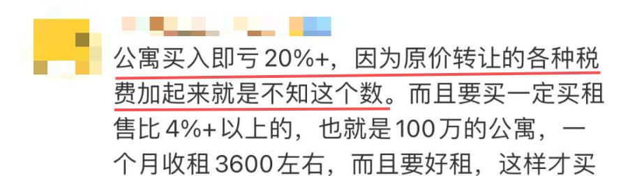 有人算了一笔账,公寓(非住宅类)买入就亏20%以上。