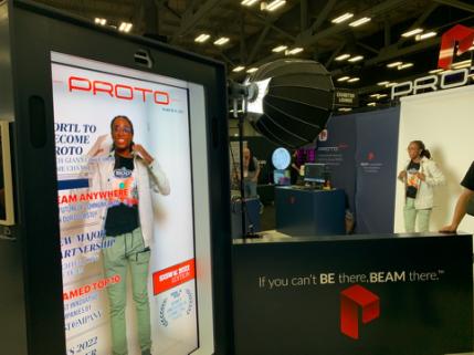 另一边“搔首弄姿”有过之无不及的人正在体验 PROTO 的全息投影产品。你站在传感器前,被立体化投影到对面的屏幕上,还可以切换到多种应用场景,演唱会、健身、舞蹈等。在当时的氛围烘托下,确实有些沉浸感。