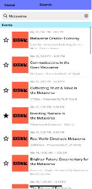 SXSW app 里输入 Metaverse,session 刷不到底丨SXSW app 截图