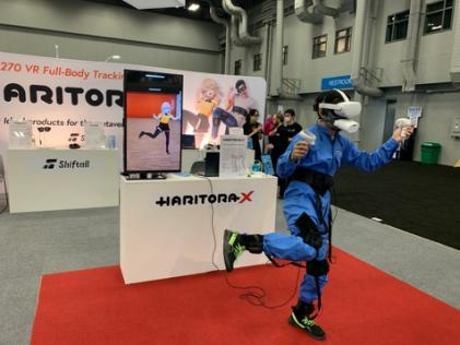 一家科技公司展示了一套名为 HARITORAX 的全身追踪产品,270 美元。它可以与 Oculus 搭配使用,还记得 Horizon Worlds 里面的半身小人吗?如果戴上,HARITORAX 就能实现腰部、腿部等身体部位九个维度的追踪。联想一下,“二次元”在 VRChat 里面“斗舞”,就知道它都能用来干吗。