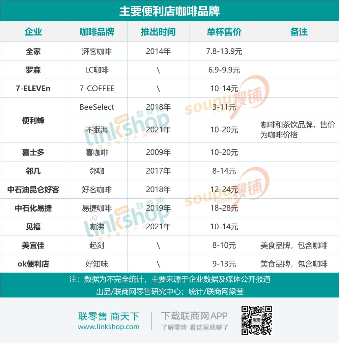 注:不同时间段,不同城市或区域,同一便利店品牌的咖啡价格可能有所差异。