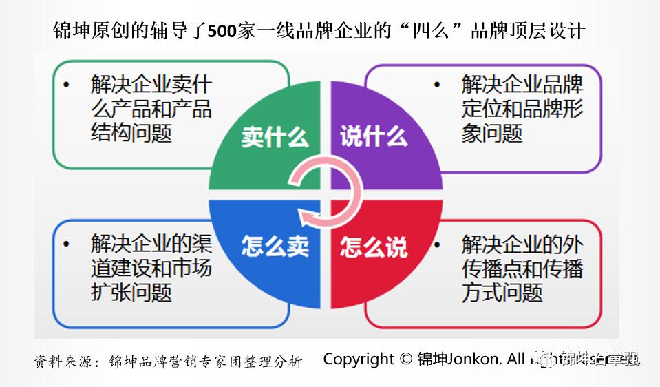 品牌顶层设计上的“四么”就是解决品牌卖什么、说什么、怎么说和怎么卖。