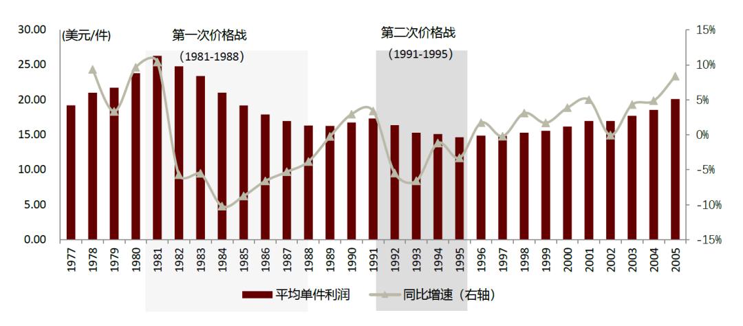 联邦快递从1975年成立开始到1995年,长达二十年的时间内,其规模效应体现的非常明显,单件收入从最初时的60美金以上的水平逐步下降至约15美金,此时FedEx的规模约为日均300万件,此后的近30年内,其价格已经基本上稳定,仅出现非常小幅的下降。