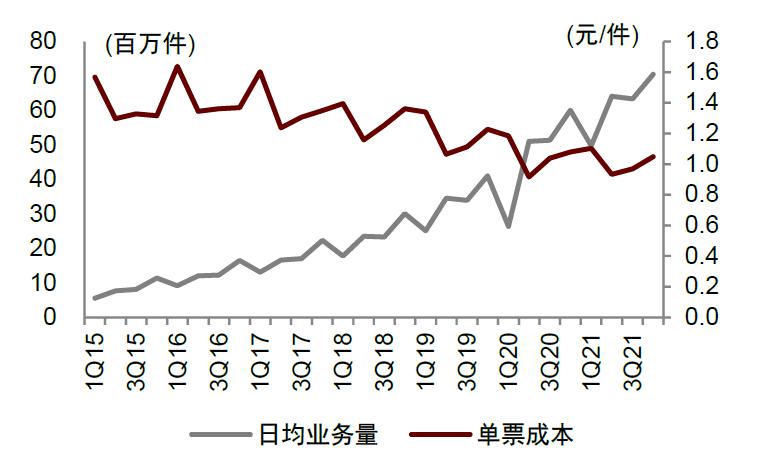 近期一系列涉及保障基层快递员权益、平台经济反垄断等领域的监管措施,一方面有望使得快递公司成本面临刚性约束而无法大幅降价抢量。另一方面倒逼快递企业采取简单降价之外的竞争策略,例如产品和服务的差异化、品牌的溢价。