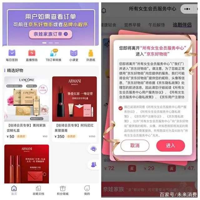 “所有女生”的流量平台搭建起来了,相应的商业营销活动也跟上了,在上线“精选好物”功能后,消费者能够直接跳转到商家的小程序直营店购买产品,目前已有阿玛尼、兰蔻两个品牌长期入驻。