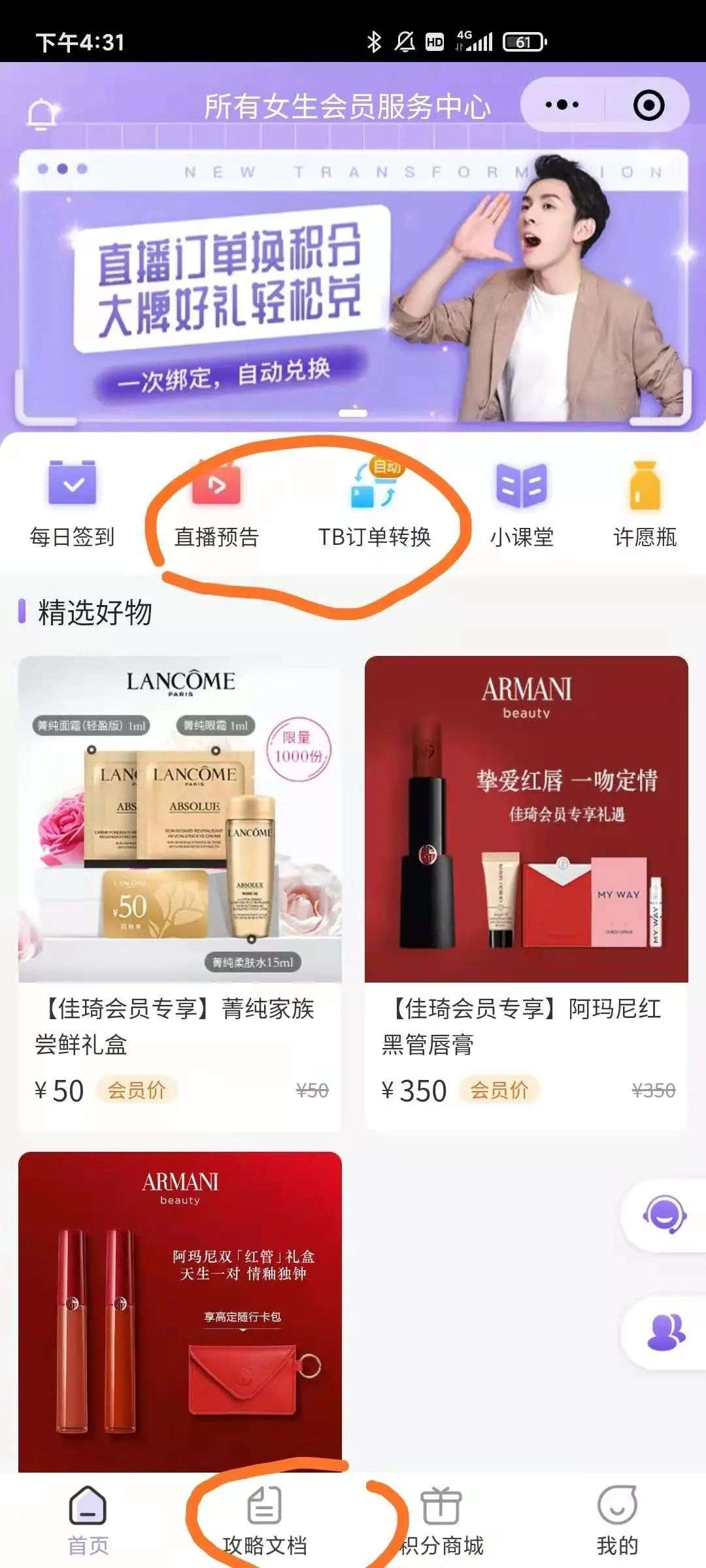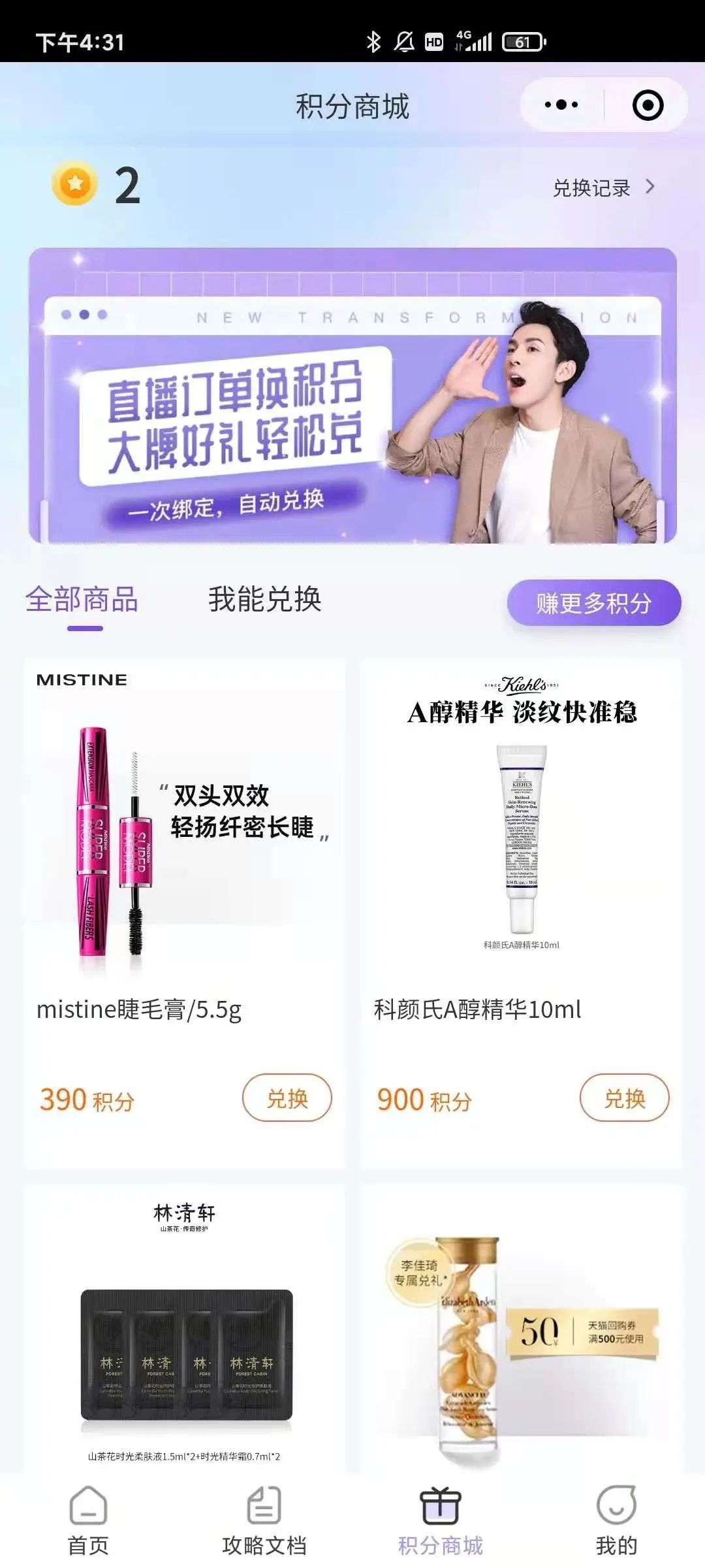 由此我们可以看到,虽然美ONE声称这个小程序是以服务直播为核心的,但其实它有着明显的“引流”意图,通过订单换积分奖励的机制,显然是在试图将淘宝直播间的流量沉淀到李佳琦自己的私域中。