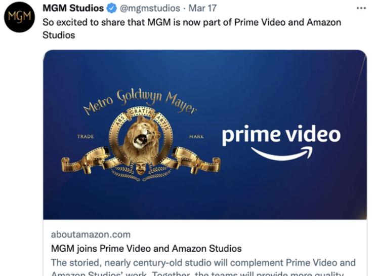 3月17日亚马逊方面宣布,已完成对曾经“称霸好莱坞的雄狮”米高梅的收购。事实上,米高梅此前经历了2005年被索尼以50亿美元买下、2010年因无力偿还债务宣布破产托管、2019年结束与索尼的合作后,并再次将自己摆上货架、最终被亚马逊方面接手。而此次耗资85亿美元的收购,也是亚马逊继2017年用137亿美元收购全食有机超市以来,该公司史上的第二大收购案。