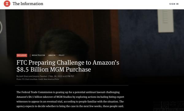 不过据The information报道,美国联邦贸易委员会(FTC)调查米高梅收购案,可能只是调查亚马逊电商与云计算业务的前奏,FTC真正希望的是借此调查到亚马逊云计算部门AWS与流媒体公司交易的信息,并为开启更大规模的反垄断指控搜集素材。
