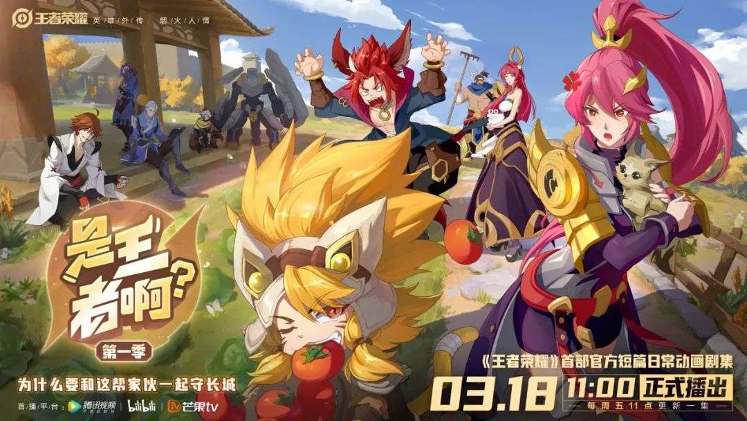 《是王者啊?》是由天美工作室《王者荣耀》项目团队出品、奇影动漫制作的《王者荣耀》衍生动画,自3月18日在腾讯视频、Bilibili、芒果TV上线,全14集。