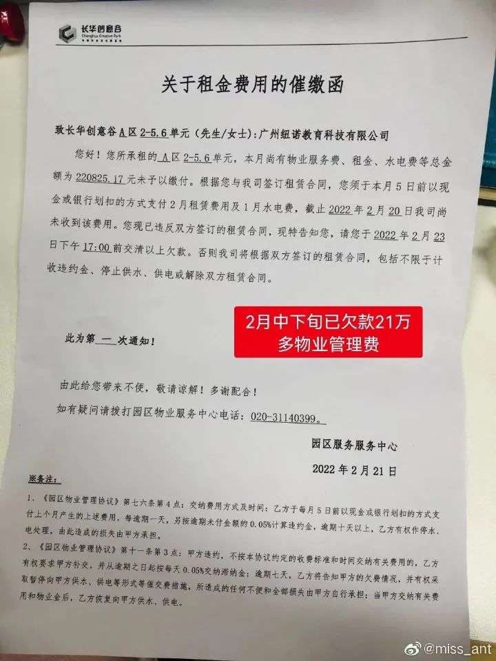 家长查到园区物业信息 ,2月份就拖欠物业费22万