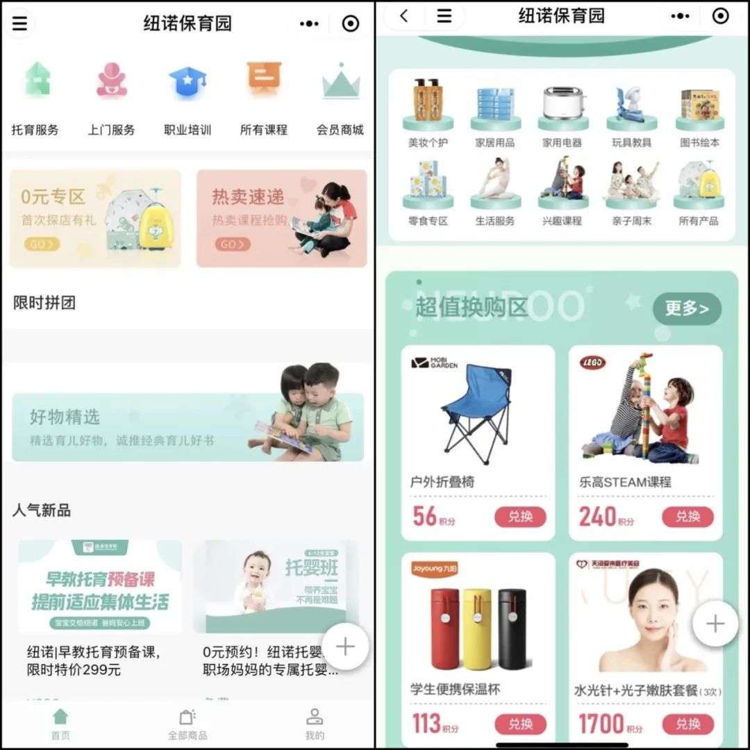 首先是置换课程,方案指出家长可以将宝宝的剩余托费按1:1.5的比例兑换积分,在商城换购需要的课程。目前,纽诺已经与八家机构完成了初步洽谈,置换项目包括亲子游泳、儿童口腔、儿童击剑、儿童美术、儿童英语、速心算、阅读等课程等项目。