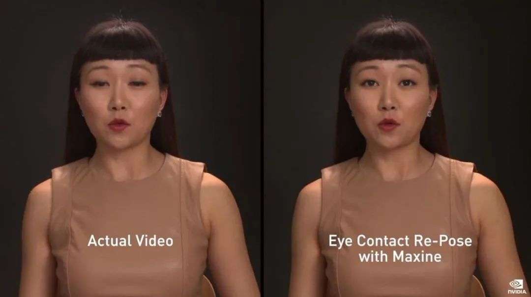 当远程视频会议召开时,即便你在读稿或者浏览其他网页,Maxine 可以帮助说话者与参会的其他人员保持视线上的交流。如果参会人员包含不同国籍、使用不同语言,Maxine 能够通过 AI 模型实时切换成另一国语言。
