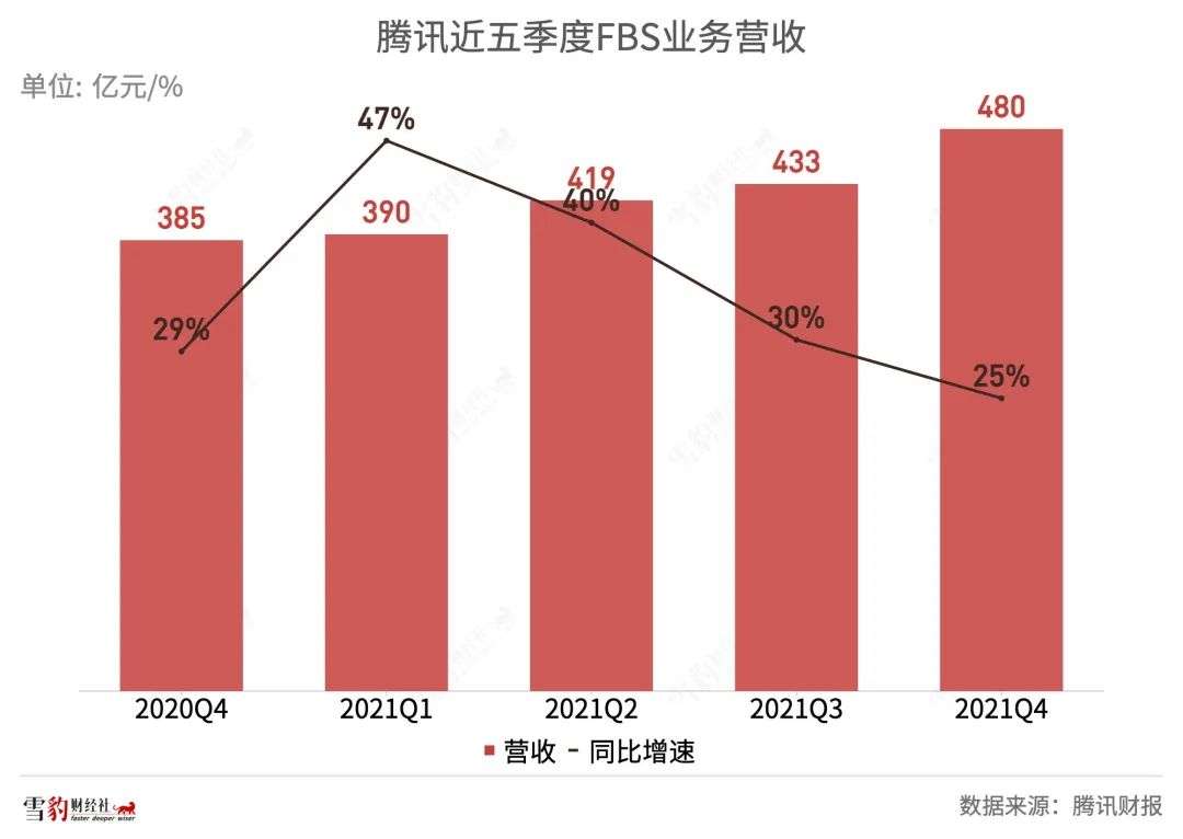 2021年Q4,FBS业务营收480亿元,已占到总营收的33%,成为腾讯第二大业务。
