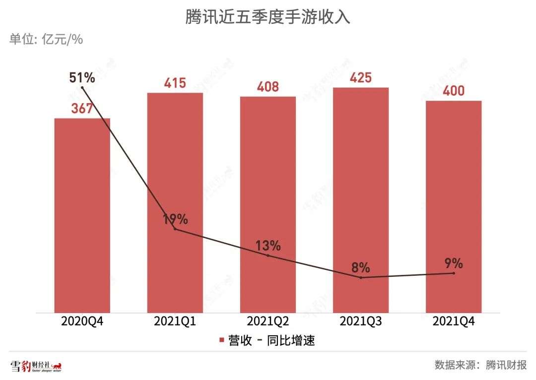 不过摇钱树生钱的速度正在显著减慢,尤其是在游戏中占据大头的手游收入,Q4营收400亿元,同比仅增长9%。相比于去年同期51%的高增速,显著下滑。