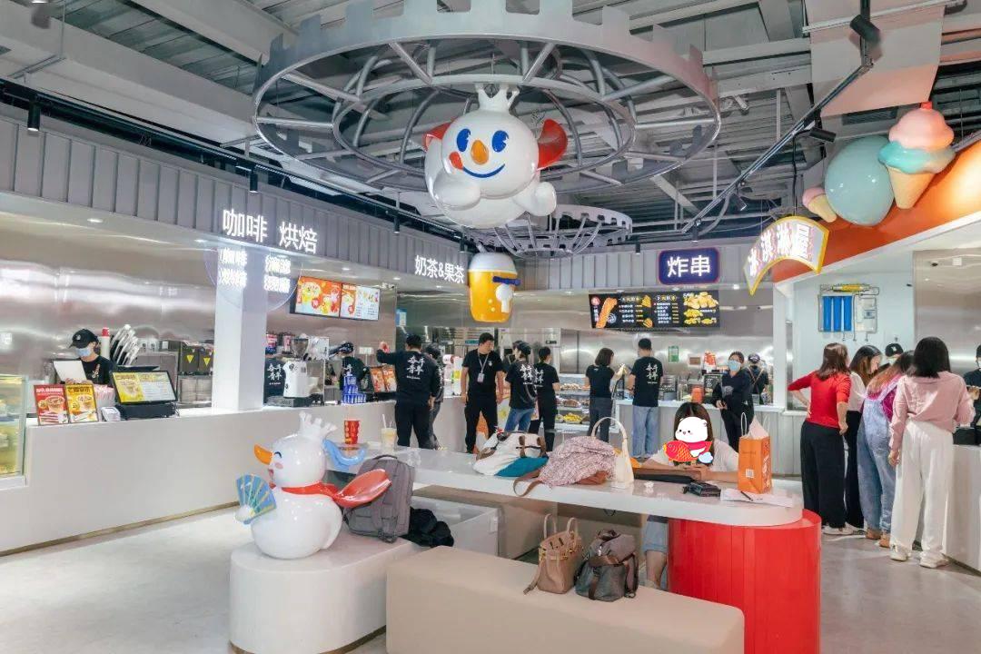 2021年,蜜雪冰城又在郑州推出首家“雪王城堡体验店”,不仅卖奶茶等饮品,还卖鸡肉串、年糕串和面筋等炸串,在店里的其它分区内,还有DIY冰淇淋和各种周边产品售卖。