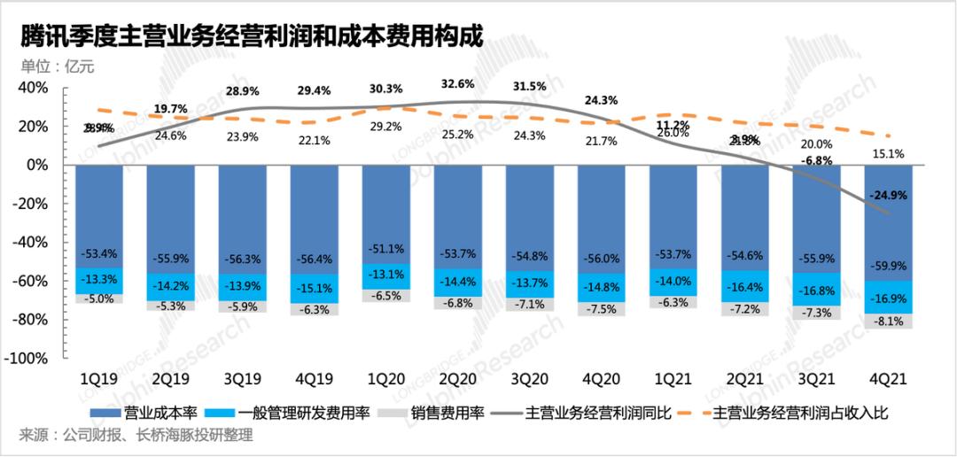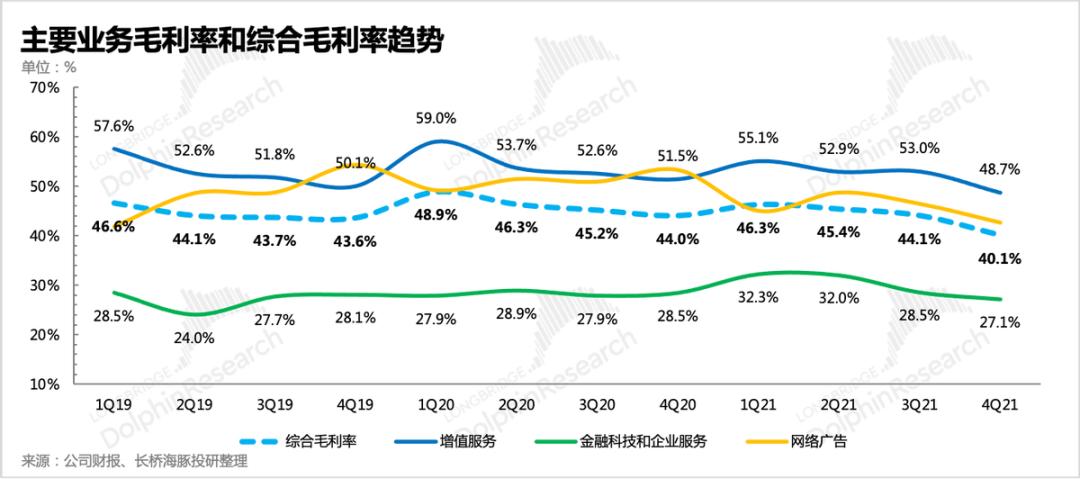 来到利润端,腾讯四季度主业利润非常难看,主要拖累在毛利端,三大主业的毛利率均显著下滑。
