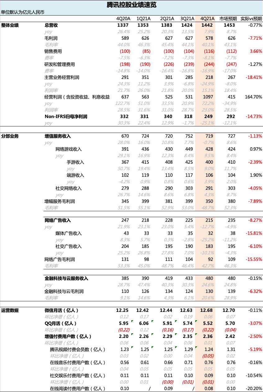 北京时间3月23日港股盘后,腾讯控股(0700.HK)发布2021年四季度及全年业绩。单看主营业务情况,想想腾讯此前一贯的表现,这次的成绩单实在是有些难看。