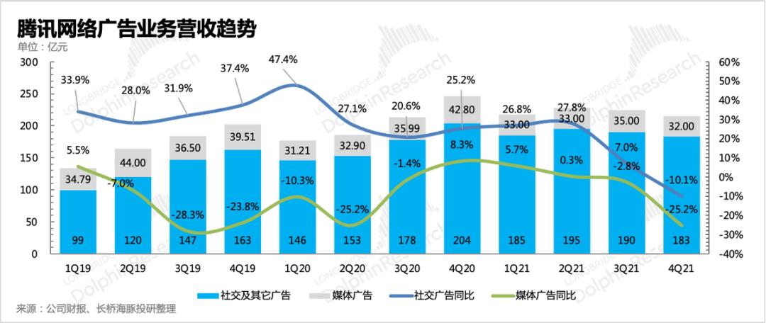 在三季度财报点评中,海豚君就提过,四季度的广告收入只会更差,大家需要做好心理准备。但实际上,腾讯广告的凄惨还是超出了我们的预期。