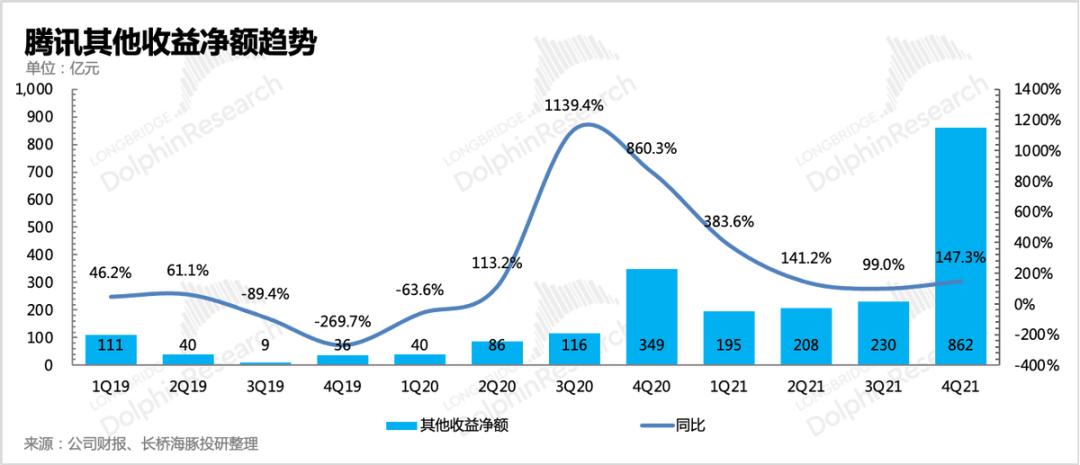 4、大幅减持京东的收益780亿已经在四季度确认,计入其他收益净额。未来如果腾讯进一步处置自己的联营/合营资产等权益类资产,至少对于股东来说是利好。