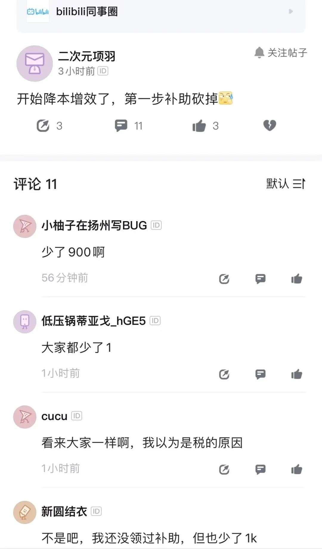 近日,有网友在脉脉上透露,近期B站砍掉了员工工资里1000元的补助。全天候科技就此消息询问B站游戏业务职员,得到了证实。