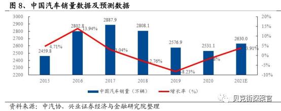 根据统计数据可知,2021年我国汽车产销双双超过2600万辆,兴业证券基于依此为基数,并以5.5%为年度汽车生产增长率,预计2022年全年汽车产销量有望达到2743万辆。