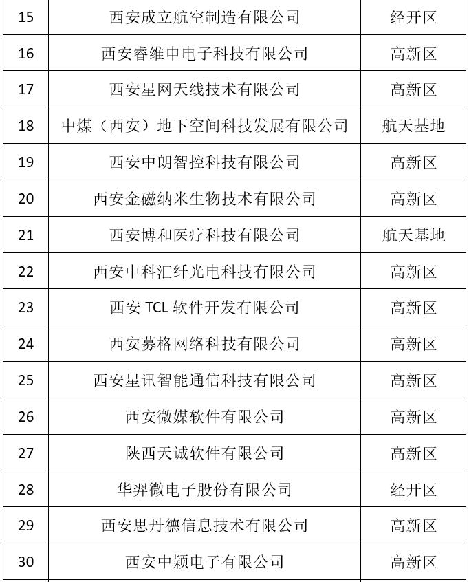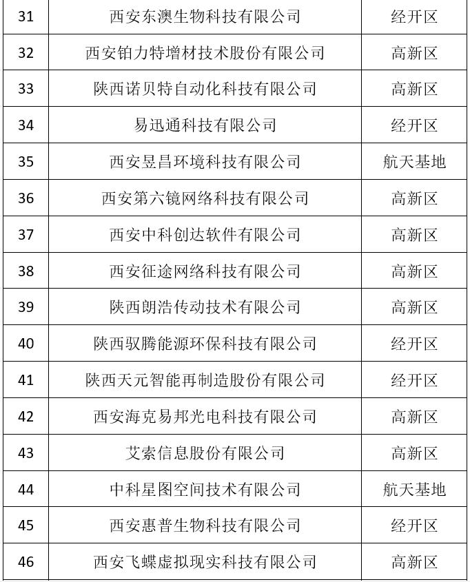 2021年度西安市瞪羚企业拟认定名单