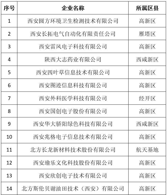 关于2021年度西安市瞪羚企业拟认定名单的公示