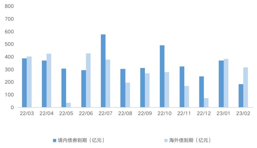 与此同时 , 据 CAIC统计,2022年二季度,200家核心房企境内外债券合计到期规模约1865元,其中海外债约为889亿元。