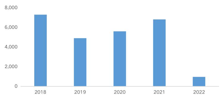 2018-2022年1-2月房企拿地投资规模(亿元)