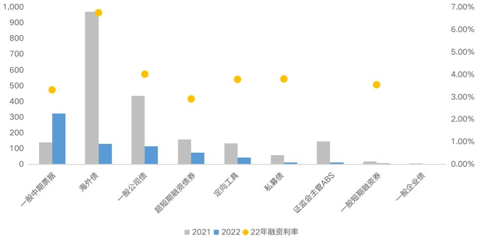 2022年1-2月房企发行各类型债券规模&利率