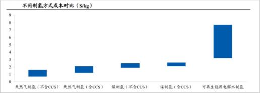各环节的成本加总使得氢气的终端使用价格高居不下,在和其他能源的对比中处在比较劣势的地位。