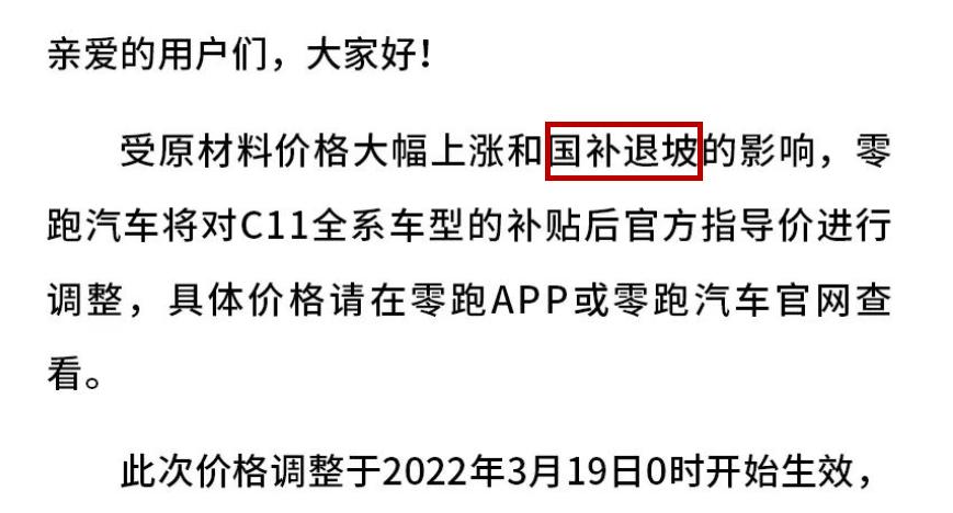 例如这次涨价幅度较大的零跑,其C11车型根据不同配置价格上涨了2-3万元,就是受到了原材料价格上涨和补贴退坡的共同影响,这在其官方声明中也有所说明。