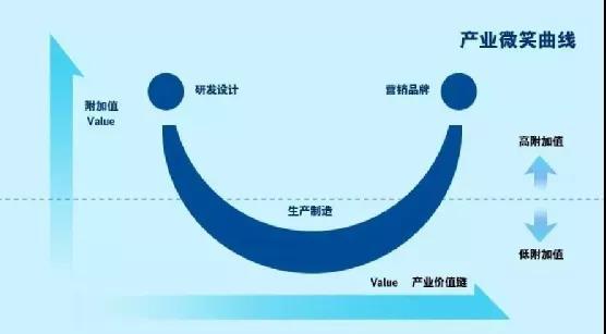 宏碁集团创始人施振荣曾经提出了著名的微笑曲线理论,一端是产业链条上游的研发设计、另一端同样是位于产业链上游的品牌营销,中间则是生产制造。