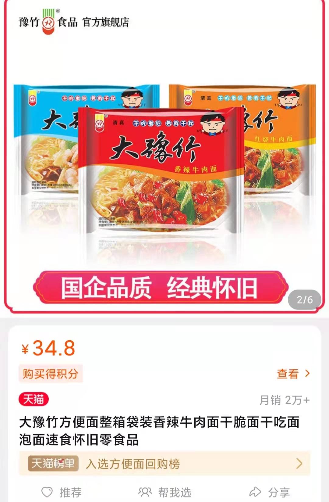 相比之下,康师傅旗舰店人气榜第一的红烧牛肉面月销才1万+。