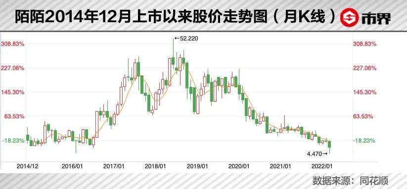 直播业务不断下滑,社交板块又遇天花板,市场对陌陌的前景表示担忧,也让股价犹如“过山车”般,在2018年中旬达到49.436美元的高点后,一路下滑到2022年3月25日的7.120美元,不到4年跌去85%,市值损失83亿美元,约合528亿人民币,使得唐岩损失上百亿财富。