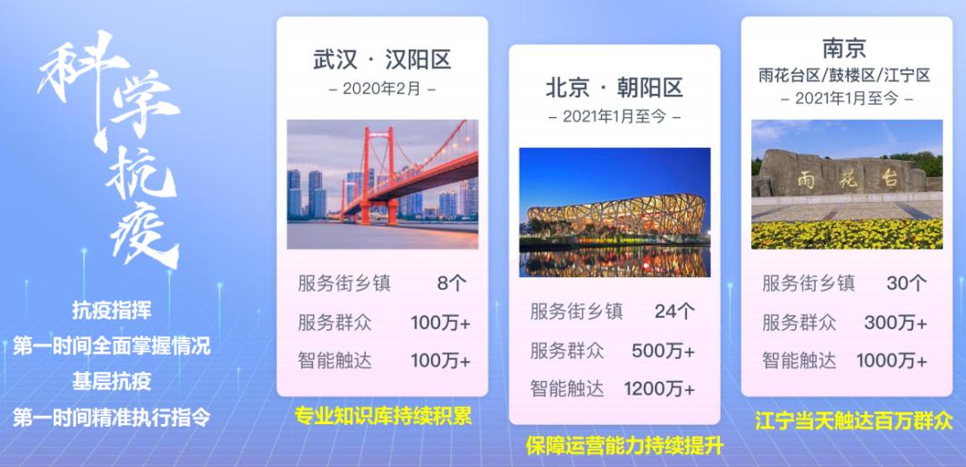 2021年1月至今,疫情日趋常态化,硅基智能的AI智能抗疫产品随之创新优化,与城市的常态化抗疫防疫有效结合,深入到南京雨花台区、鼓楼区、江宁区、秦淮区的核酸检测通知、疫苗接种等服务管理工作中。