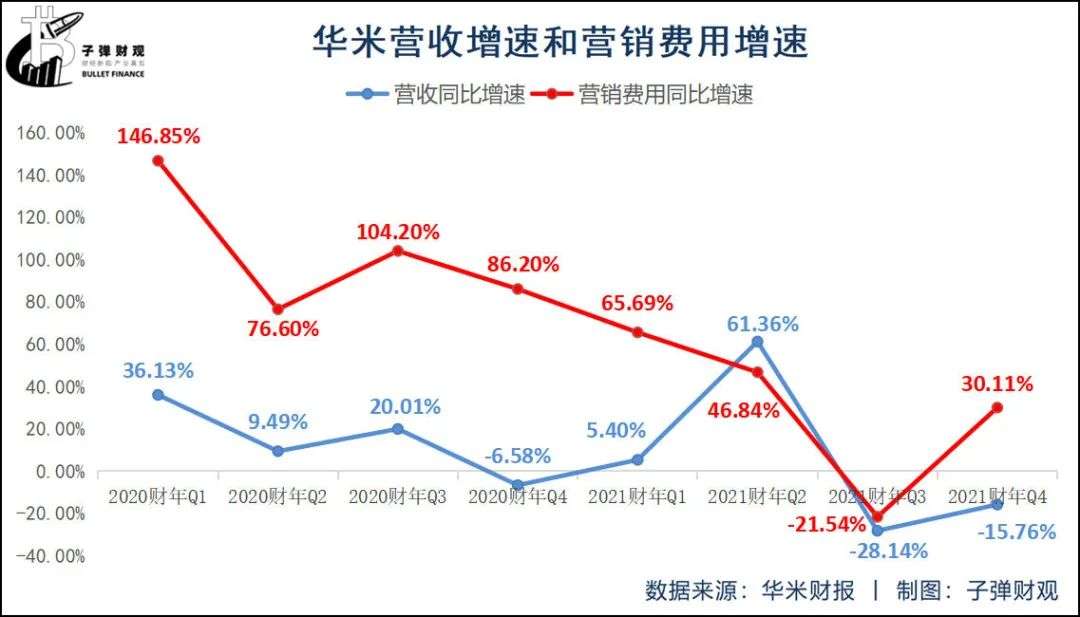 更重要的是,华米的季营收增速几乎没能跑赢其同期的营销费用增速。