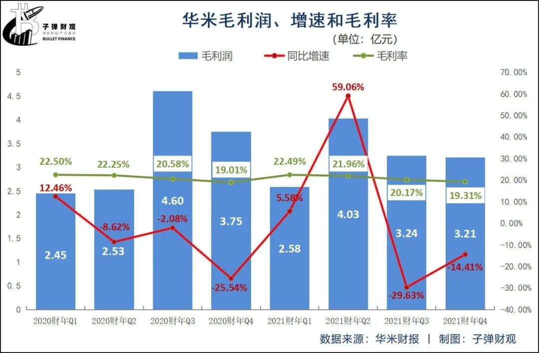 根据财报,最近8个财季,华米的毛利润增速在2021财年Q2达到最高,为59.06%,此后两个财季转负,分别为-29.63%和-14.41%。