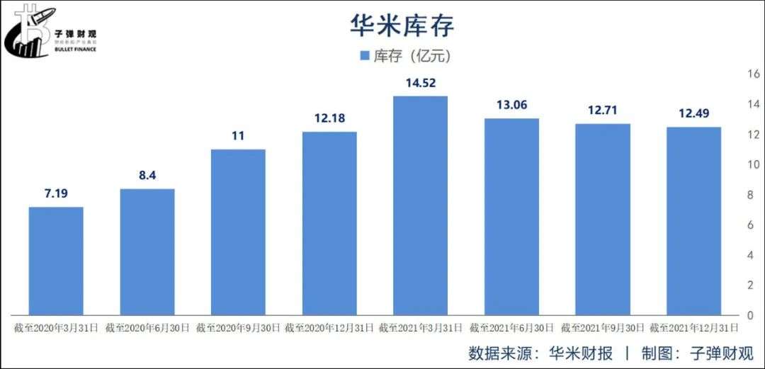 根据华米往期财报,截至2020年3月31日,该公司的库存金额为7.19亿元,而截至2021年12月31日,其库存金额已飙至12.49亿元。